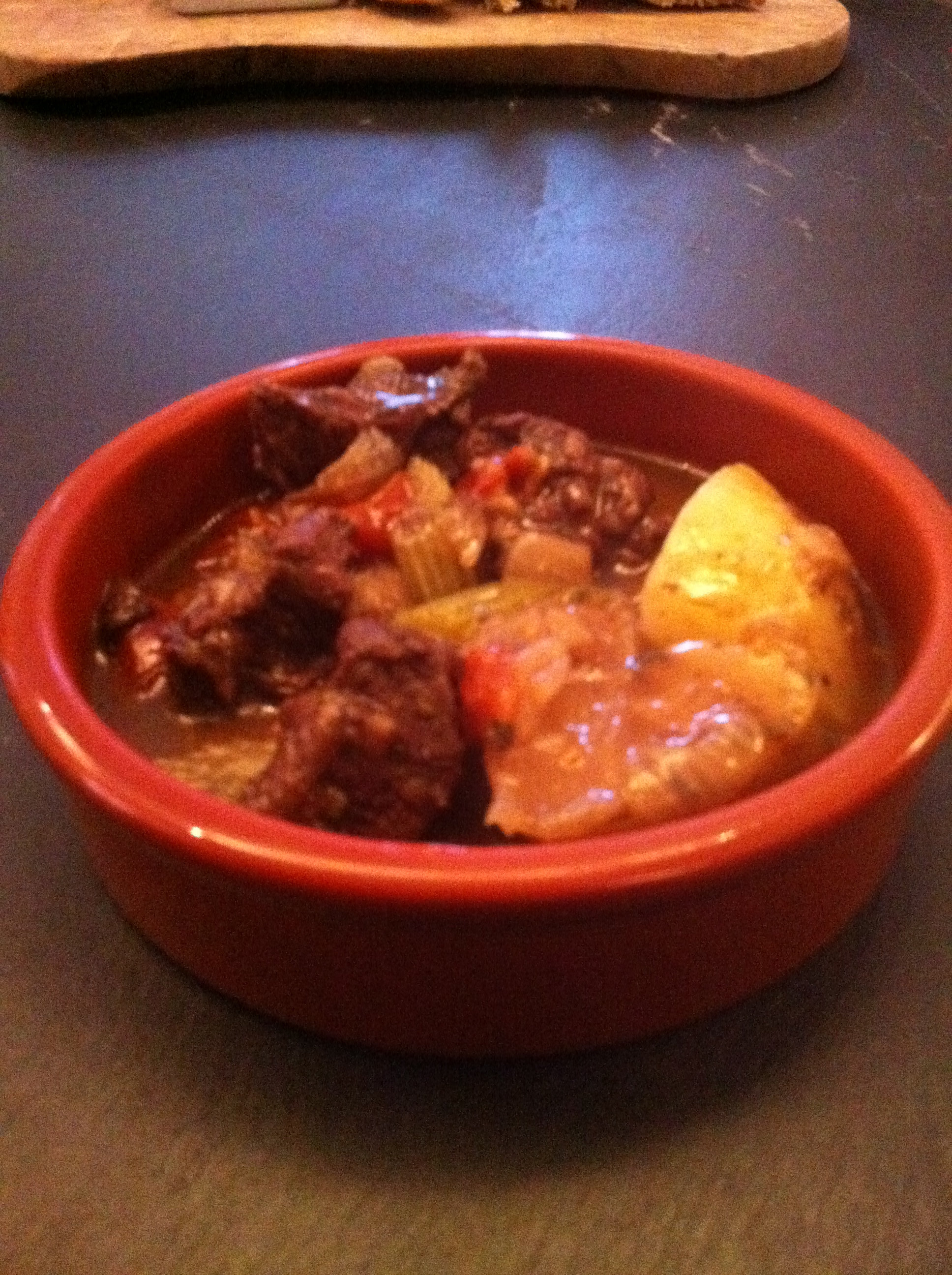 After being told that it was possible a little ambitious to make a casserole in the three hours we had available, we cracked on straight away. Each pair was given a different cut of beef to prepare – cheek, chuck and shin – and we chose and chopped a selection of vegetables from a large steel tray in the middle of the table. The prepping of the casserole was accompanied by Simon’s explanation of different cuts of meat, debate over whether or not to brown the meat in advance of cooking (we didn’t) and lots of hints and tips, such as using black pudding to thicken sauces and give more flavour.