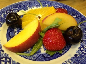 The salad? Well, that was a bit of an odd one. Fresh nectarine, strawberries, orange and cherries sat on top of a bed of seasoned rocket leaves – a bizarre combination.