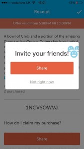 …and that’s it. Your confirmation screen/receipt includes your booking code, which you simply need to show to the venue when you arrive (it will be emailed to you, and there’s a “Bookings” tab within the app where it will also be stored. You also have a social share option pop up on the screen – it’s up to you whether you share or not!