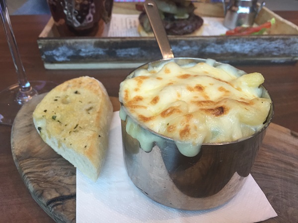 We’re always swayed by mac ‘n’ cheese when we see it on the menu, and here was no different: ordering a side (£2.50) to share, we were impressed at the way in which it was presented and the amount of cheese on the top…but it was a bit of a disappointment. The melted cheese topping was too mild to have much discernible flavour, while the sauce itself seemed to be devoid of cheese, more like a white sauce. I was also a little confused by the addition of peas to the sauce…
