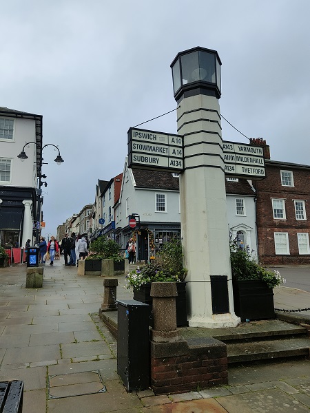 You’ll find this signpost, known as the “Pillar of Salt”, just outside the entrance to the Abbey Gardens on Angel Hill. Designed by architect Basil Oliver in 1935, it needed special permission to be constructed as its design did not meet the building regulations of the time.