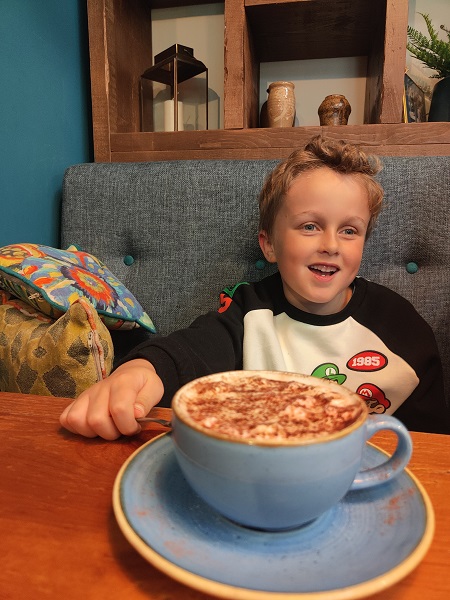 We’d been eyeing up the delicious-looking cakes on the counter, too, but had to pass in the end as there was no way we could keep the child seated any longer.