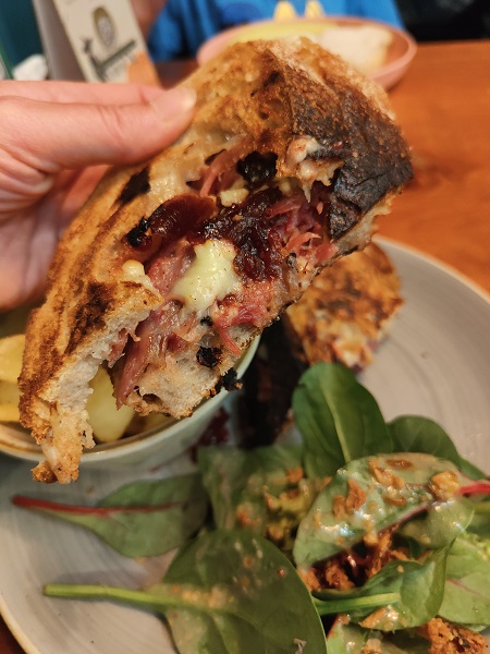 The salad was basic but beautifully dressed, the fries were cooked perfectly…and that toastie? Insanely good. The ham hock was packed with flavour and flaked beautifully with each mouthfully, the Cheddar was generous, the chutney pulled the whole thing together. It was a work of art.