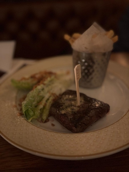 The steak is cooked as requested; seared briefly, evenly pink through, and clearly from an animal that lived a better-than-average bovine life before meeting its maker. I made short work of all 6oz (not surprising, I suppose) before lapping up the shallot and mustard butter with the fries. Served with this was a clever little thing: a classic Caesar salad disguised as an ear of baby gem lettuce. Is it the best steak I’ve had in Bristol? No, but perfectly serviceable.