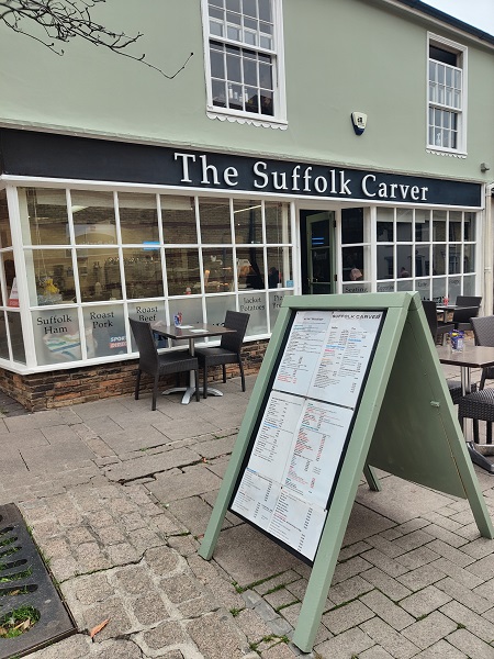 Sometimes, you don’t want a delicately presented lunch served on a slate, accompanied by various foams, gels and garnishes. You just want a proper lunch in a good old-fashioned caff – and that’s exactly what you’ll find at The Suffolk Carver in Bury St Edmunds.