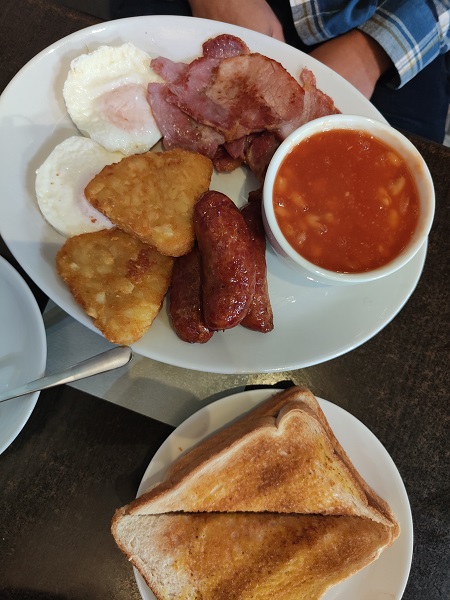 Across the table, the Super Full English (£9.95) was a serious plate (well, two plates) of food. Three sausages, three rashers of bacon, two eggs, two hash browns and what can only be described as a bucket of baked beans jostled for space on the plate, the two slices of buttered toast served on a plate of their own. Everything was cooked well, served hot and presented without any faff.