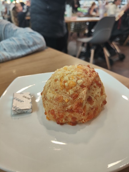 My cheese scone was decent – nicely dense, flavourful and a good size – and the seasonal latte, while not independent coffee shop quality, was very drinkable.