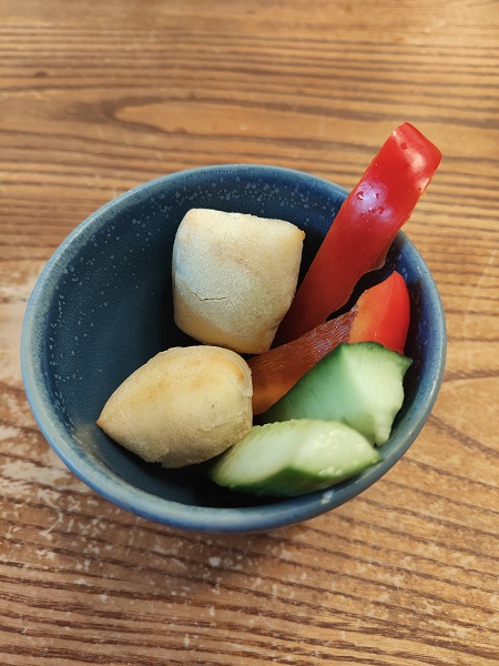 The set lunch menu gave us four adults plenty of choice, and the seven-year-old ordered from the kids’ menu, which offers options for both larger and smaller appetites. He went for the latter at £7.99 for a starter, main, drink and dessert: exceptional value, especially for Center Parcs! He began with garlic dough bites served with pepper and cucumber sticks – demolished in minutes – followed by a small pizza with two toppings of his choice (chicken and red pepper). It was exactly the right size for a seven-year-old: no leftovers, no waste and a happy child. Dessert was a bowl of ice cream (again, with a choice of sauce and toppings) that was eaten so quickly I didn’t get time for a photo!