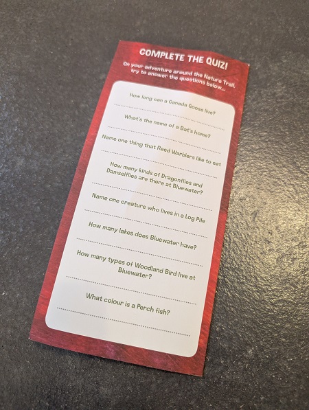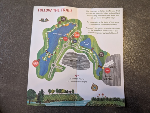 The leaflet includes a map of the Bluewater Nature Trail, as well as a quiz on the back for kids to complete.